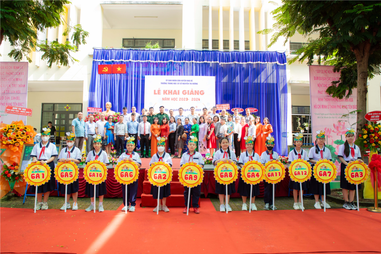 Sáng ngày 05/9/2023, Trường THCS Nguyễn Thị Hương tổ chức Lễ khai giảng năm học 2023-2024. Đến tham dự có sự góp mặt của Bà Lê Thị Oanh – Huyện ủy viên, Trưởng phòng Giáo dục và Đào tạo huyện Nhà Bè. Ông Lâm Tấn Đạt – Phó Bí thư thường trực Đảng ủy xã Phú Xuân. Bà Nguyễn Thị Bích Phụng – Bí thư xã Đoàn xã Phú Xuân. Bà Võ Thị Phương Lan – Phó Chủ tịch Ủy ban nhân dân xã Long Thới. Trung tá Võ Thanh Vũ – Chính trị viên, Phó Ban chỉ huy Quân sự huyện Nhà Bè. Bà Nguyễn Thị Kiều – Chủ tịch hội Phụ nữ nhà máy X51. Ông Minh Phương – Trưởng ban hậu cần kho xăng dầu VK102. Đại diện các ban ngành, đoàn thể, Ban đại diện Cha mẹ học sinh. Đặc biệt là sự tham dự của Ban Giám hiệu, quý thầy cô giáo và hơn 1570 em học sinh trường trung học cơ sở Nguyễn Thị Hương. Sau đây là một số hình ảnh của buổi lễ.